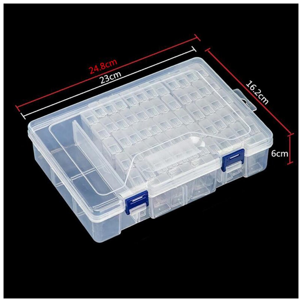 Zbyly vám diamantíky a nemáte je kam dát? Nebo si od začátku chcete při diamantování obrazu své diamantíky přehledně organizovat? Nebo si je třeba vzít bezpečně s sebou na cesty? Doporučujeme tuto plastovou krabičku, ve které je 64 uzavíratelných menších krabiček na diamantíky ve tvaru legendárních Tic taců. A k tomu ještě sada extra nářadíčka: pinzeta, 3x diamantovací tužka s různými nástavci, 2x mistička a vosk.