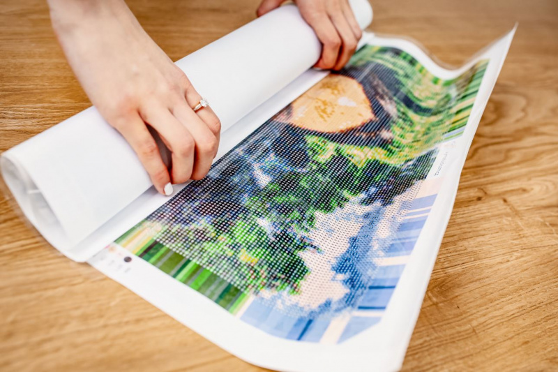 Při sázení diamantů na plátno napnuté na rámu doporučujeme si plátno podložit např. knížkou nebo kuchyňským prkýnkem, aby nedocházelo k přílišnému protlačení plátna, a tedy k poškození obrazu. Anebo si přihoďte do košíku naši svítící LED podložku, která takovému riziku předchází, a navíc dokonale prosvítí symboly na plátně, takže budou mnohem lépe viditelné.
