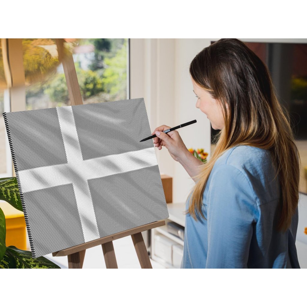 Vytvoř si svůj nový designový obraz pomocí tečkování! Vyber si svou oblíbenou barvu fixu a vytečkuj si předtištěné plátno hezky ve svém tempu. Při volbě varianty s rámem si hotový obraz můžeš rovnou pověsit na zeď. A že bude co obdivovat! Umělecký dojem výsledného obrazu zaručen, a to i přes nulové zkušenosti s malováním. Tečka za tečkou tě dovede přímo za perfektním uměleckým dílem.