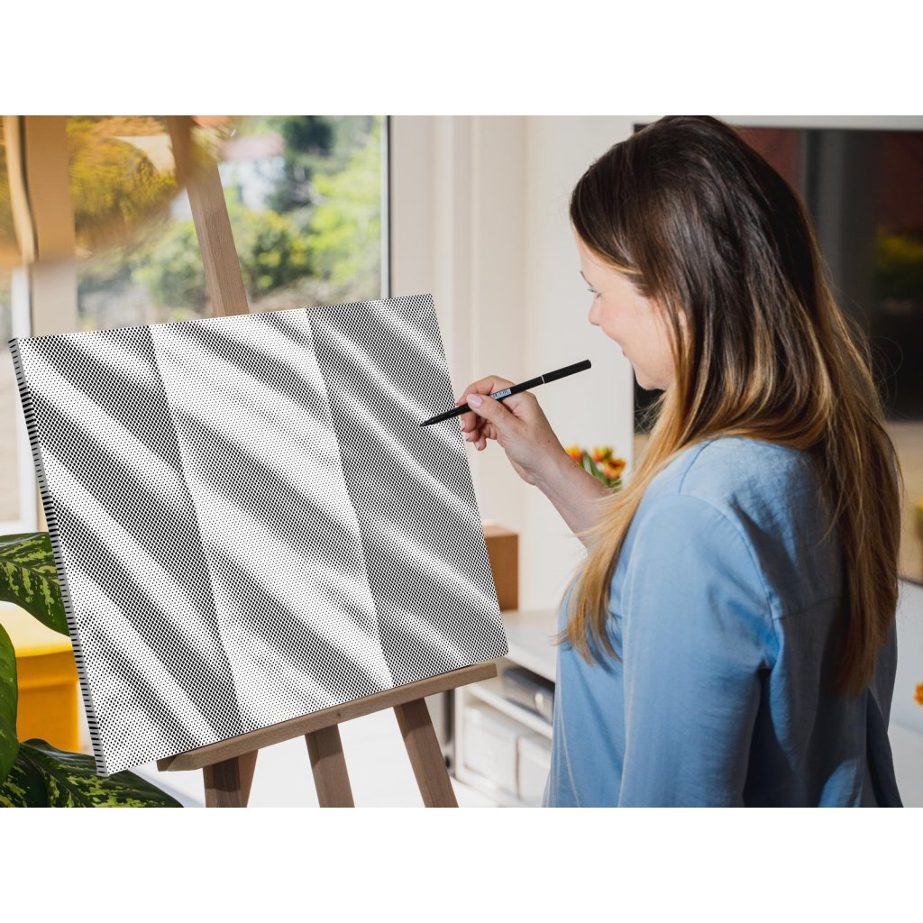 Vytvoř si svůj nový designový obraz pomocí tečkování! Vyber si svou oblíbenou barvu fixu a vytečkuj si předtištěné plátno hezky ve svém tempu. Při volbě varianty s rámem si hotový obraz můžeš rovnou pověsit na zeď. A že bude co obdivovat! Umělecký dojem výsledného obrazu zaručen, a to i přes nulové zkušenosti s malováním. Tečka za tečkou tě dovede přímo za perfektním uměleckým dílem.